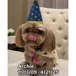 Dearest Archie, We’re all absolutely devastated by your passing. You were our first dog and I picked you out of many. You were beyond loyal & loving. We will never be the same without you. XOXOXO