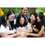 For his grand 18th birthday party, we came in black, white, and gold, and dog guests wore tuxedo bandanas. It was the year, after all, where he could now buy lottery tickets, vote in elections, and legally change his name to a more grown up “Ben” if he so desired. More than twenty of my former students over the years came to celebrate his birthday, some of whom were just a few years older than Bento himself. In one photo, with several of the students who had thrived in his care of his decade of service at Freedom University, they created a half-circle around him and looked down adoringly at him. They were a perfectly formed nativity scene, except the baby in the manger was Bento in a perfectly tailored party outfit and entirely too many treats.