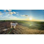 Even when he lost his vision this past year, Bento never surrendered his sense of adventure. He wore either shaded doggles or a cone on his backyard expeditions, and he even had a helmet with a sliding visor that made him look like he was ready for intergalactic adventures. When his legs weakened, his grandma sent a stroller so he could keep going on walks and traveling with us – Churro and Mo flanking his chariot like loyal knights. We all took a final road trip to Minnesota this past summer, where Bento hopped along between the corn rows in the cool soil, and enjoyed sunsets over rolling prairies with us every evening.