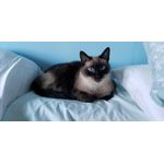 Catriona Allen was born in Fayetteville NC on the 3rd August 2009. She was a very playful kitten, both with her siblings and by herself. Catie loved to curl up in boxes. She would run to her mom and dad to cuddle any time she could. She loved hair brushes, headbands, her siblings, and adored raw beef tenderloin. Catie was very patient and loving to everyone. In March 2022, she was diagnosed with squamous cell CA of the mandible, and given a poor prognosis, with a life expectancy of 1-10 months. She bravely amazed everyone after irradiation , living for many months. When Catie could no longer eat, a feeding tube was placed, which she tolerated patiently for several more months. Finally, after our return from overseas when she was staying with relatives, she seemed to sense it was time, pulled out her tube, and went to sleep on the 8th August 2024. Catie, you will be deeply missed and always remembered with profound love. Rest in peace, little girl....