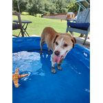 Dooley had a hard life before I was blessed to take him in. Dooley was found dumped in Dahlonega and living in the woods a few weeks, while local neighbors gave him some food and water. He was found with an old neck wound and a purposely cut ear and maybe 12 years old.