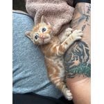 Fender was one out of a letter of three that came to me very unhealthy. His two siblings were half his size and didn’t make it. He held on as long as his little body could. He stole my heart. He was my first orange kitten and he was so sweet. Although he was only here for a short time, I hope he knows how much he was loved.