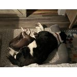 Jack loved chasing tennis balls and would enjoy walking up to show you his favorite stuffed toy in his mouth. He didn’t want you to take it from him to play fetch—he just wanted you to admire it and play tug of war! One of his other favorite activities was joining his dad for a howl. His tail would go crazy and he would throw his head back and howl along with his human, doing his best impression of a fierce wolf. He was a handsome boy—one of his most distinguishing features besides his beautiful black and white coat was his split face. It was perfectly half black and half white, the white side distinctive with a tiny little black patch above his eye like an eyebrow. He was the most expressive dog his family has ever know and will ever know—he was his own person.