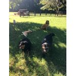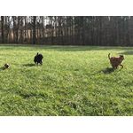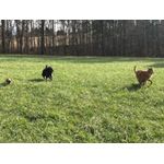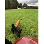 Onyx worked from home like most dogs by watching the window for any deliveries that would come or sirens to howl at, which he took seriously to the very end. He loved car rides with his parents, swimming at Mason Mill in Decatur, and chasing friends at Brookhaven Dog Park. However, his favorite activity was going to the farm to see his grandparents. He would get to play with his cousins, “supervise” his dad doing farm tasks, and chasing the tractor while his grandfather was just trying to mow the field.