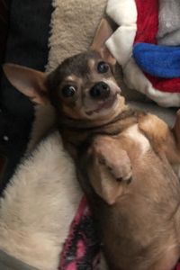 Sadie Belle was a much loved member of our family for 14 years. In 2010, I adopted her when she was a year and a half old for my boys as a Christmas present and she was truly the best gift ever. They both loved her, but my oldest son was her person. She was opposite of the stereotypical chihuahua…she never met a stranger and loved to be loved on by literally anyone. She loved snuggling in her favorite blanket or snuggling under a blanket next to us. She rarely barked and never bit anyone. She loved to explore and would bound around outside like the Mighty Dog until her last days. Sadie brought laughter with her silly expressions and giving her side eye look at people. She will be missed immensely but will soon have her final resting place beside her feline sister.